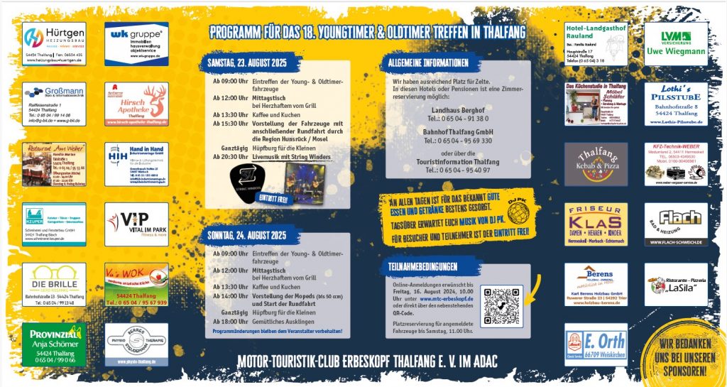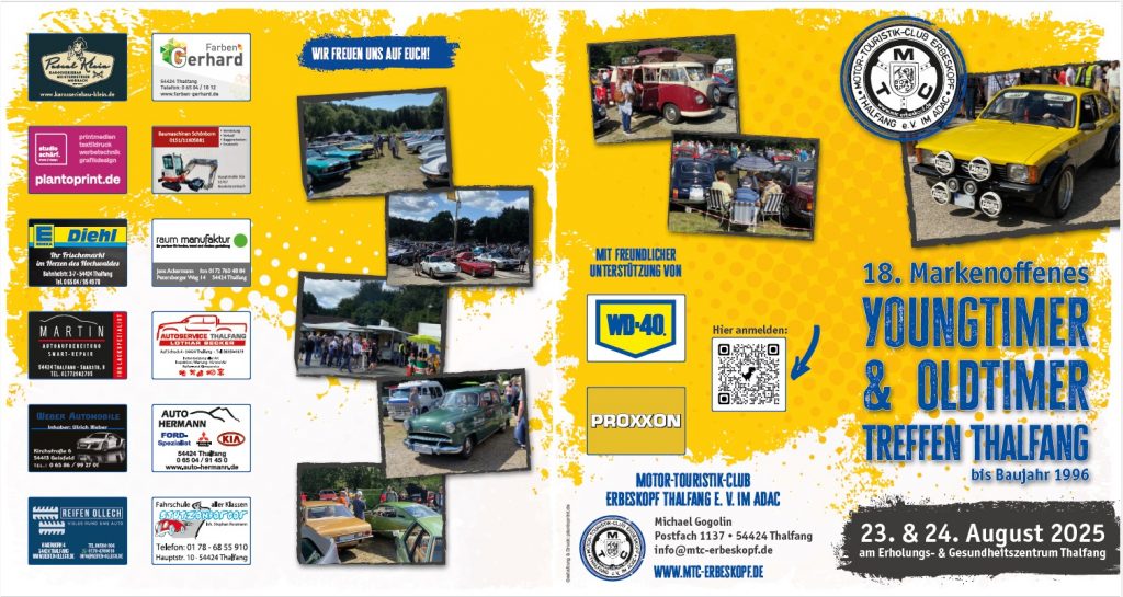Unser 18. Markenoffenes Young- & Oldtimertreffen war trotz nicht so gutem Wetter am Samstag wieder gut besucht. Mit über 500 Fahrzeugen über das gesamte Wochenende und einem wunderbaren Samstagabendprogramm der Band ‚String Winders‘ war unser Treffen wieder ein voller Erfolg. Selbst unsere Platzerweiterung rund um den Thalfanger See, war restlos belegt. Entschuldigen möchten wir uns bei allen die keine Urkunde und/oder Platz bekommen haben.